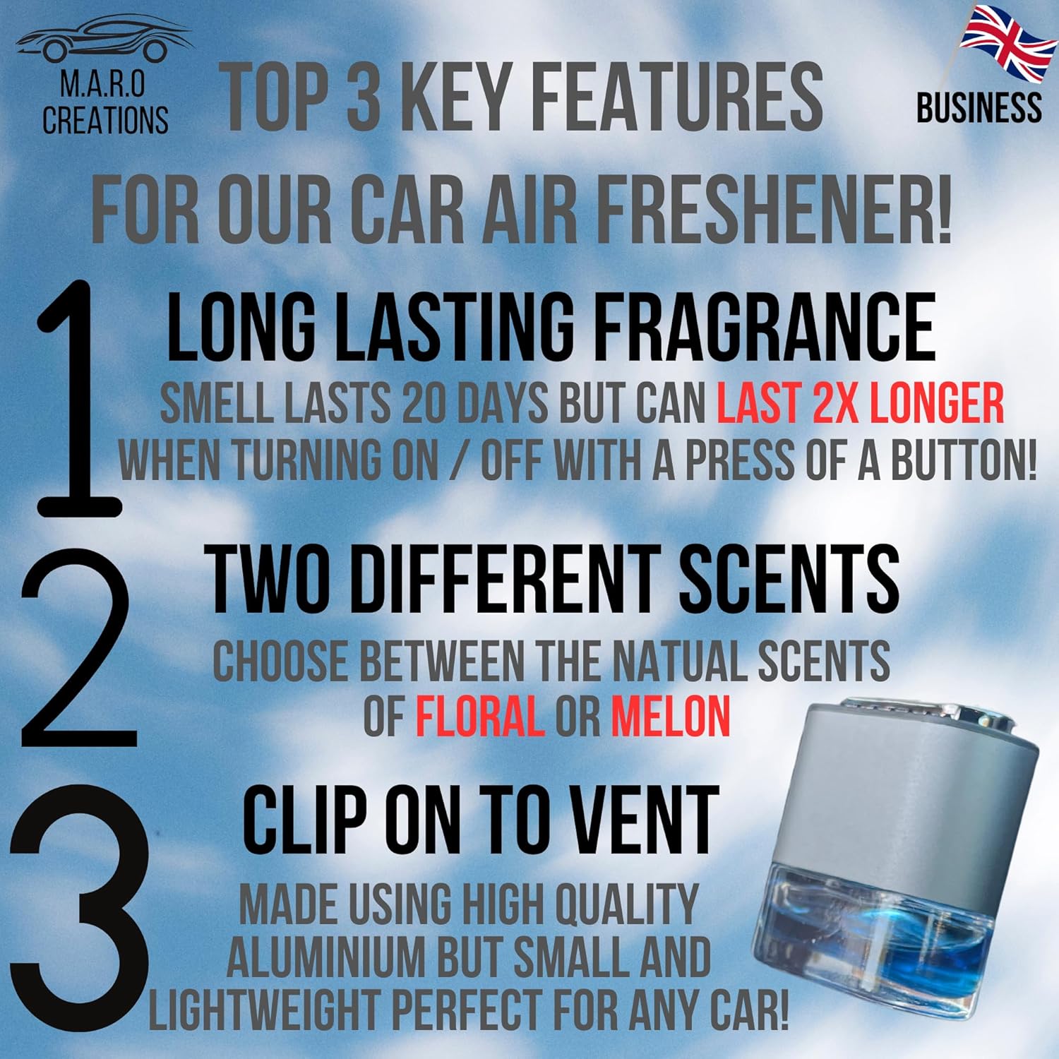 - * Premium Fragrance Selection: Our car air fresheners come in a two luxurious scents tailored for both men and women, including the captivating floral and melon scents. Perfect for enhancing your driving experience in any vehicle, from BMW 1 Series to Nissan Qashqai.