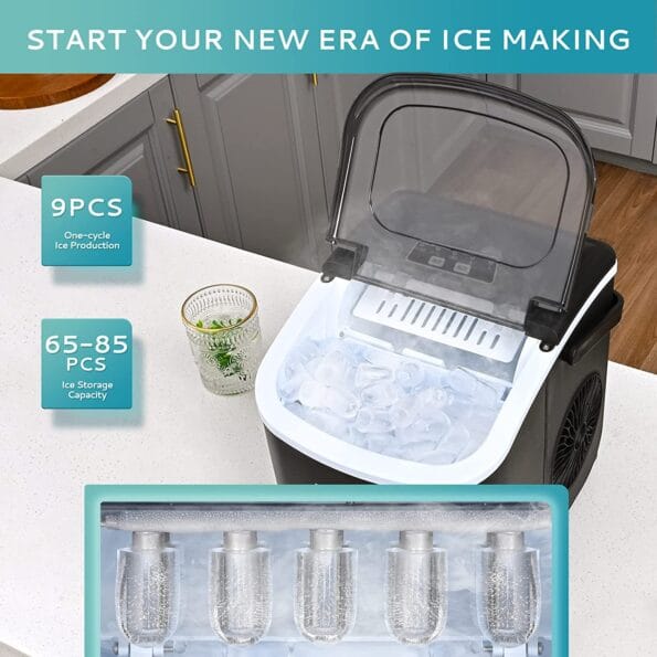 - Compact Countertop Ice Maker, measuring 8.6 * 11.7 * 11.4 inches, it doesn’t take much room of your kitchen and easy to take