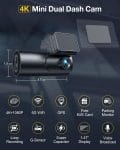 - 🏆【Ultra HD 4K Front and Rear Dash Cam】- This dual dash cam simultaneously captures the road in detail with a front resolution of 4K 2160P and rear resolution of 1080P. With a 170° wide-angle lens, large F1.8 aperture, and WDR night vision, clear footage can be captured even in low-light situations to ensure every angle is covered and nothing is missed.