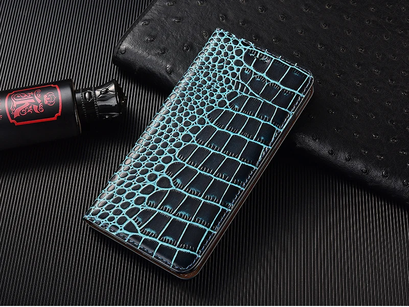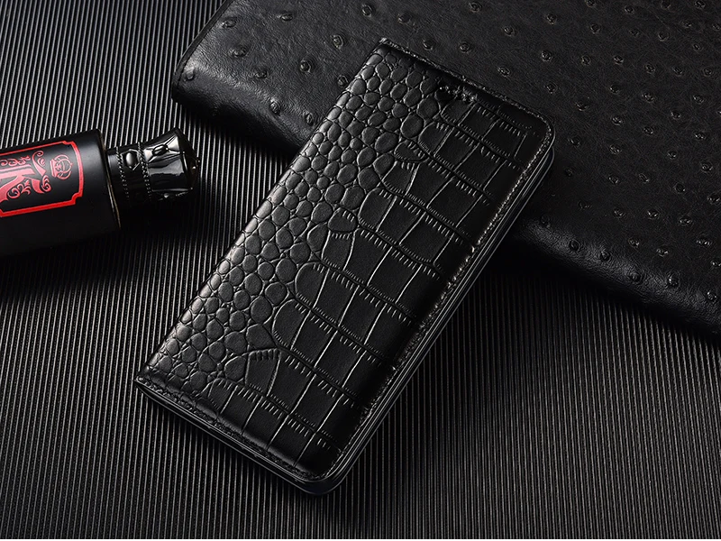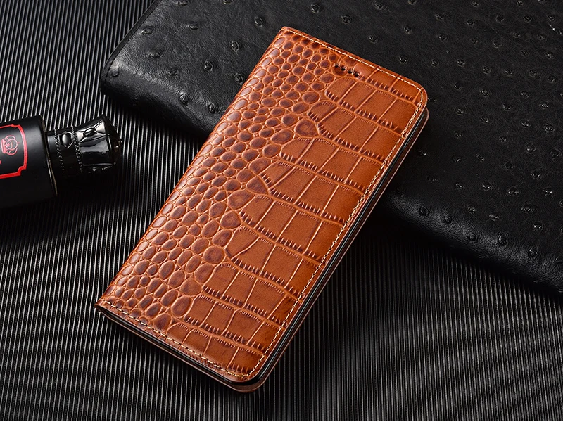 Luxury cowhide leather flip case with crocodile pattern and magnetic closure. Fits iPhone 17, 17Air, and Pro Max