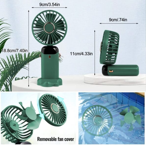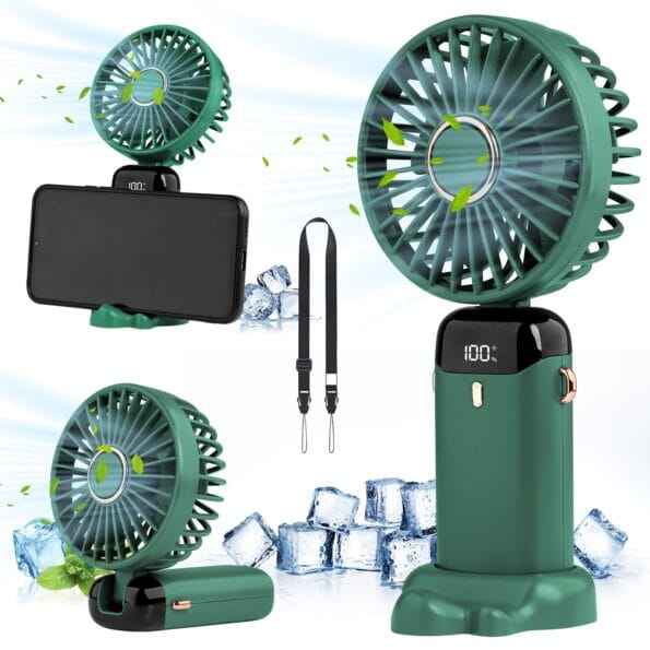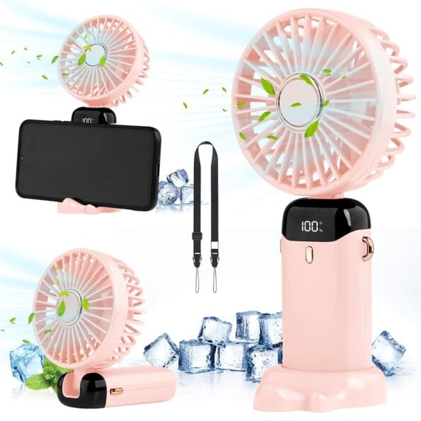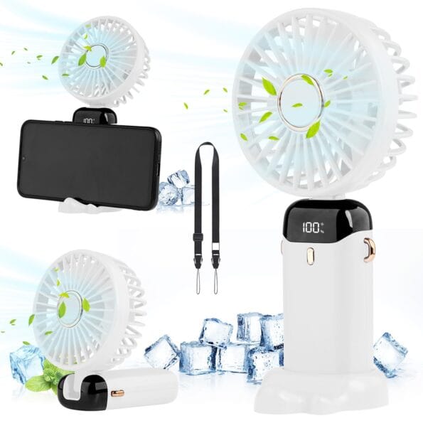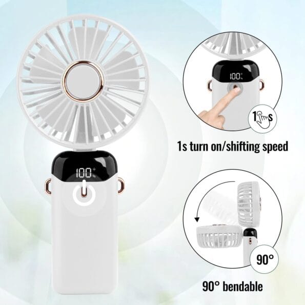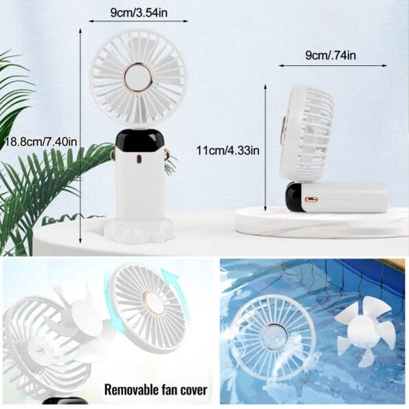 - 3-in-1 Design: handheld fan, folds 190° for a desk fan, or wear around your neck using the lanyard (included)