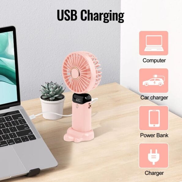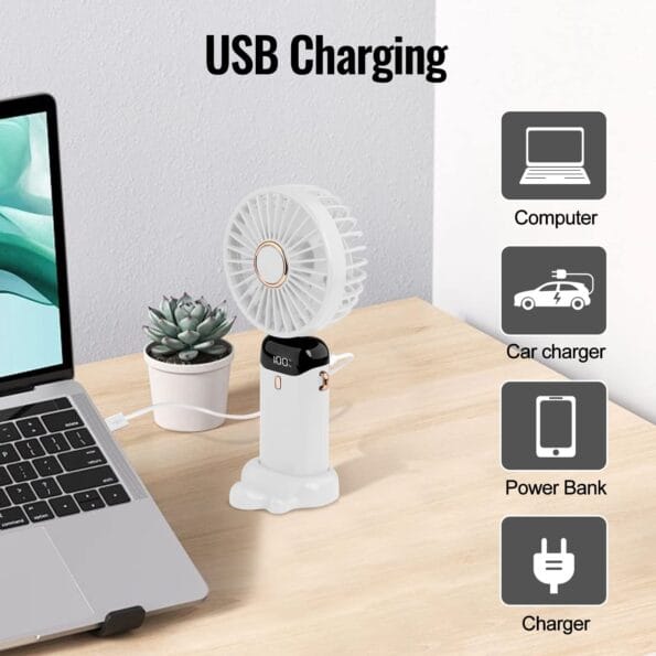 - 【LONG LASTING BATTERY & FAST CHARGING】This portable fan has a powerful battery that makes it energy efficient by allowing it to last up to 8 hours on a single charge. It is also equipped with fast USB charging technology, enabling you to continue using it while it is charging. It won’t overheat or get damaged during charging, giving you peace of mind and uninterrupted use.