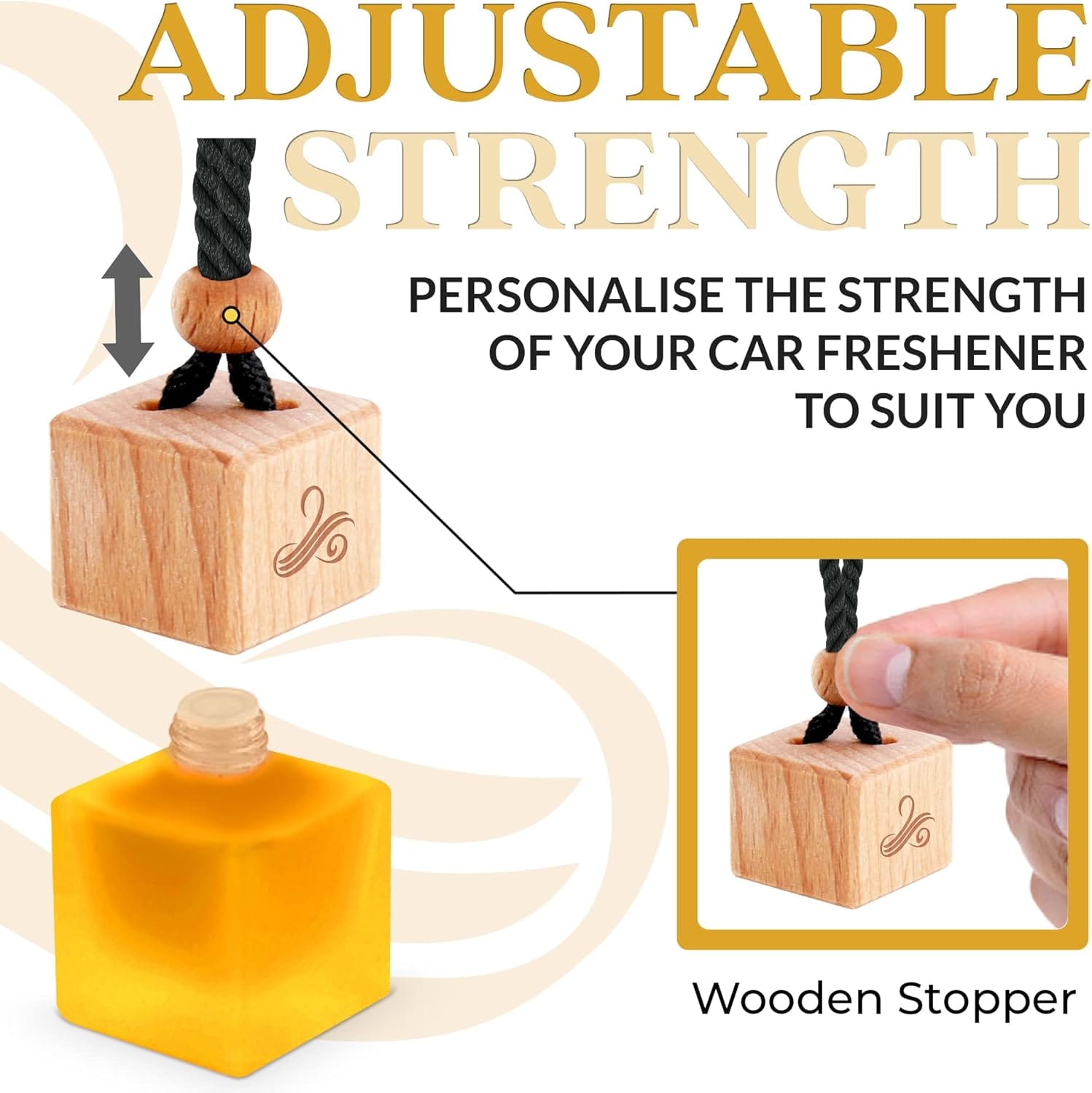 - ADJUST THE STRENGTH TO SUIT YOU – Personalise your car smell air freshener to suit your taste. Simply move the wooden stopper up and down the diffuser chords to set the strength to your liking.