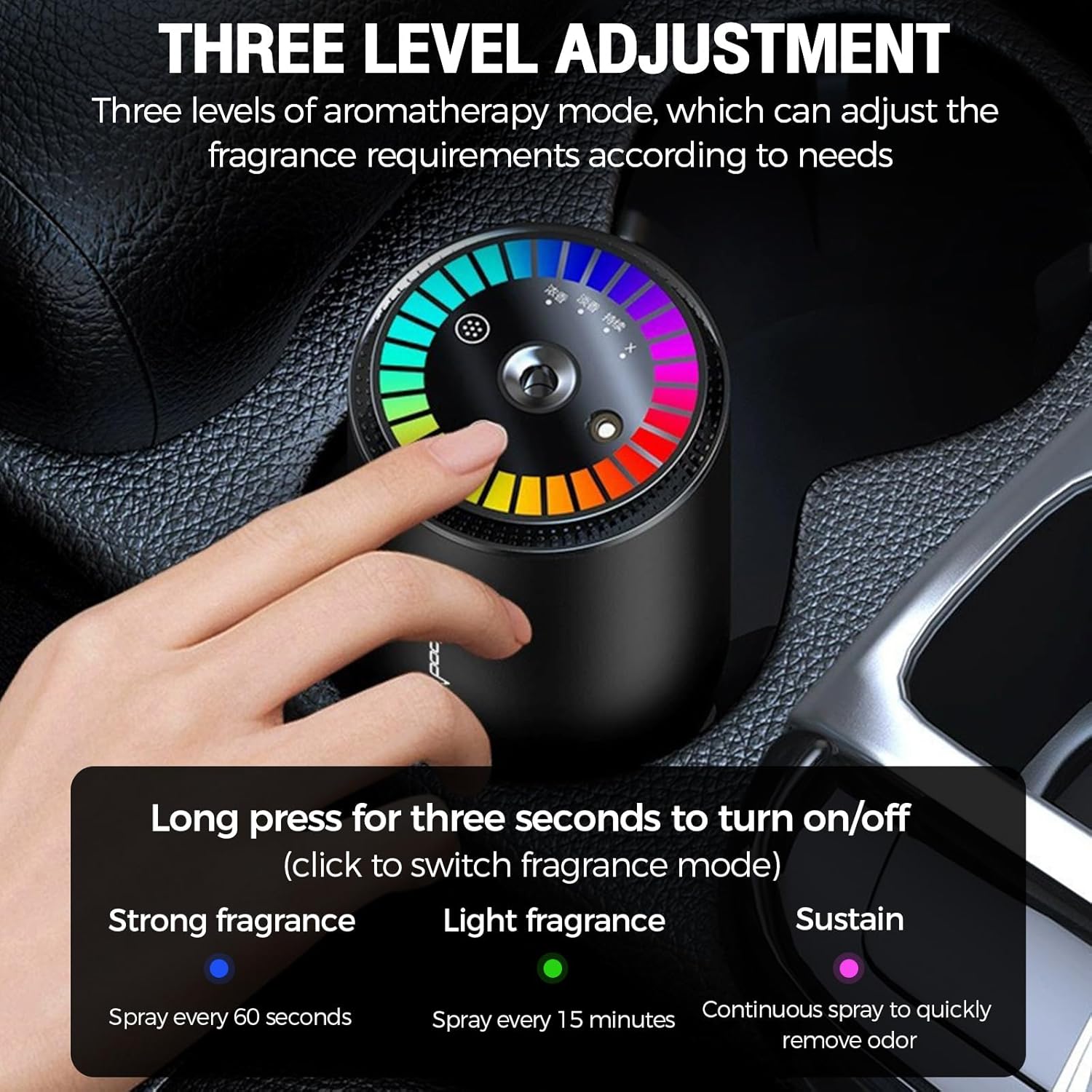 Smart Car Air Freshener with LED Rhythm Light, 50ML Fragrance Diffuser, Intelligent Vibration Sensor, Auto On/Off, Battery Operated Car Aroma Device
