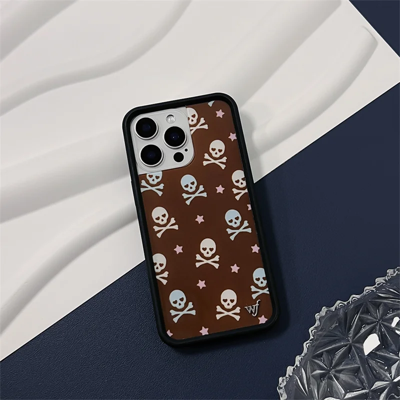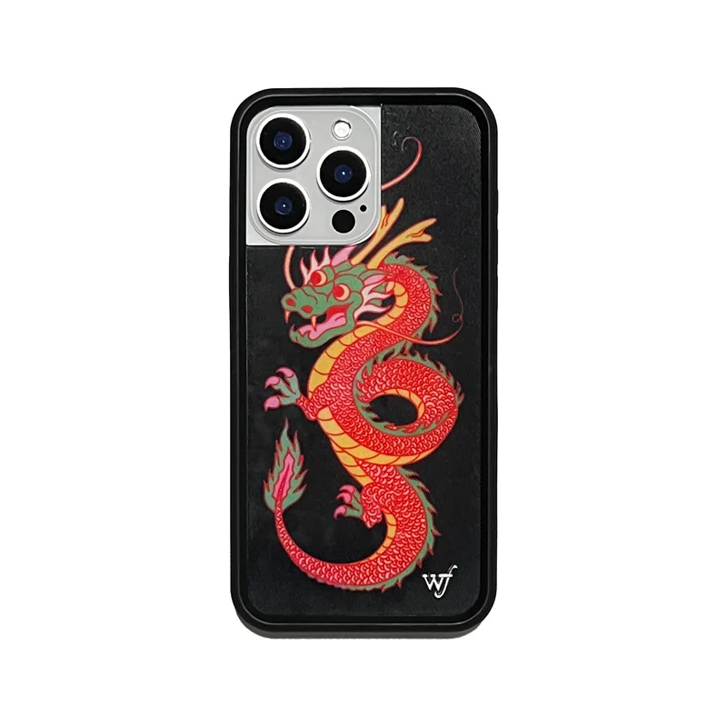 Wildflower dragon skull case with cute cherry & star design. Fits iPhone 12–17 Pro Max.